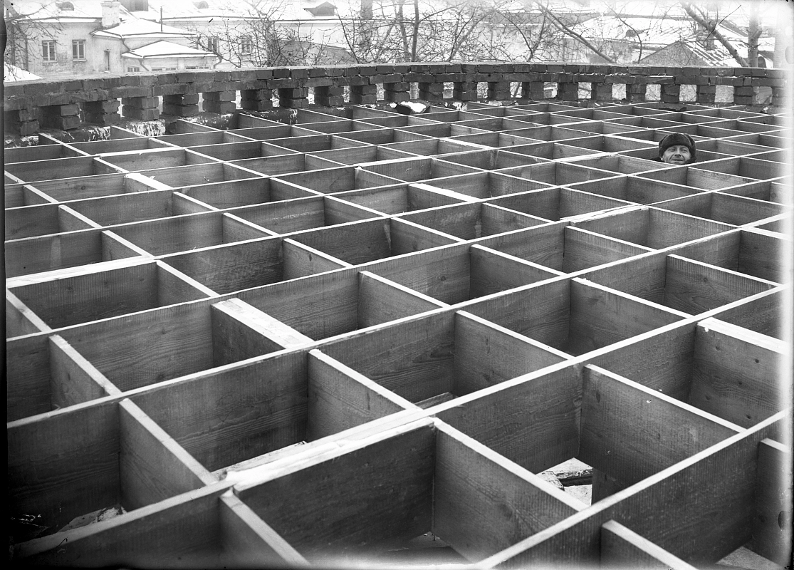 Фото © Дом Мельникова. Конструкция крыши северного цилиндра. 1927 Фото: К.С. Мельников Из собрания Музея Константина и Виктора Мельниковых