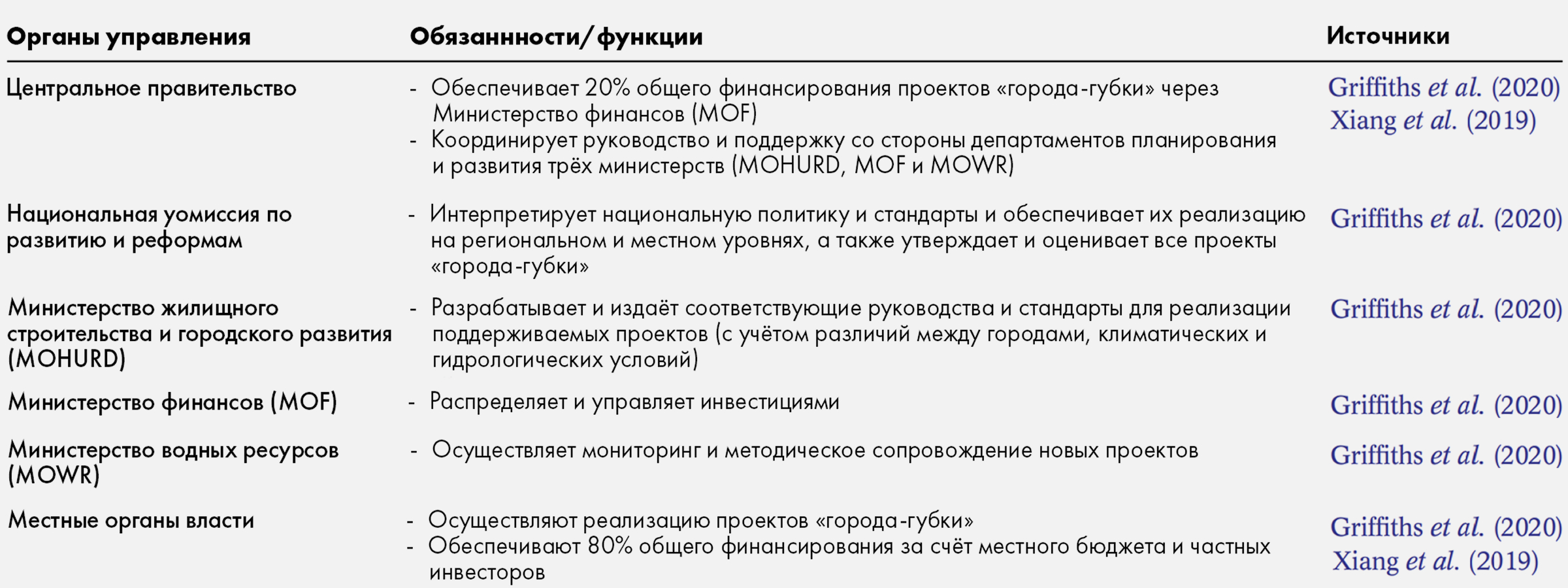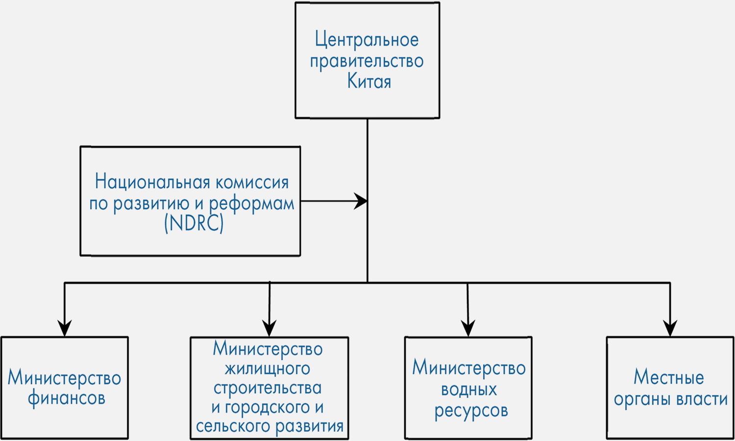 Органы центрального правительства Китая, участвующие в реализации концепции «города-губки». Перевод — Артем Агекян