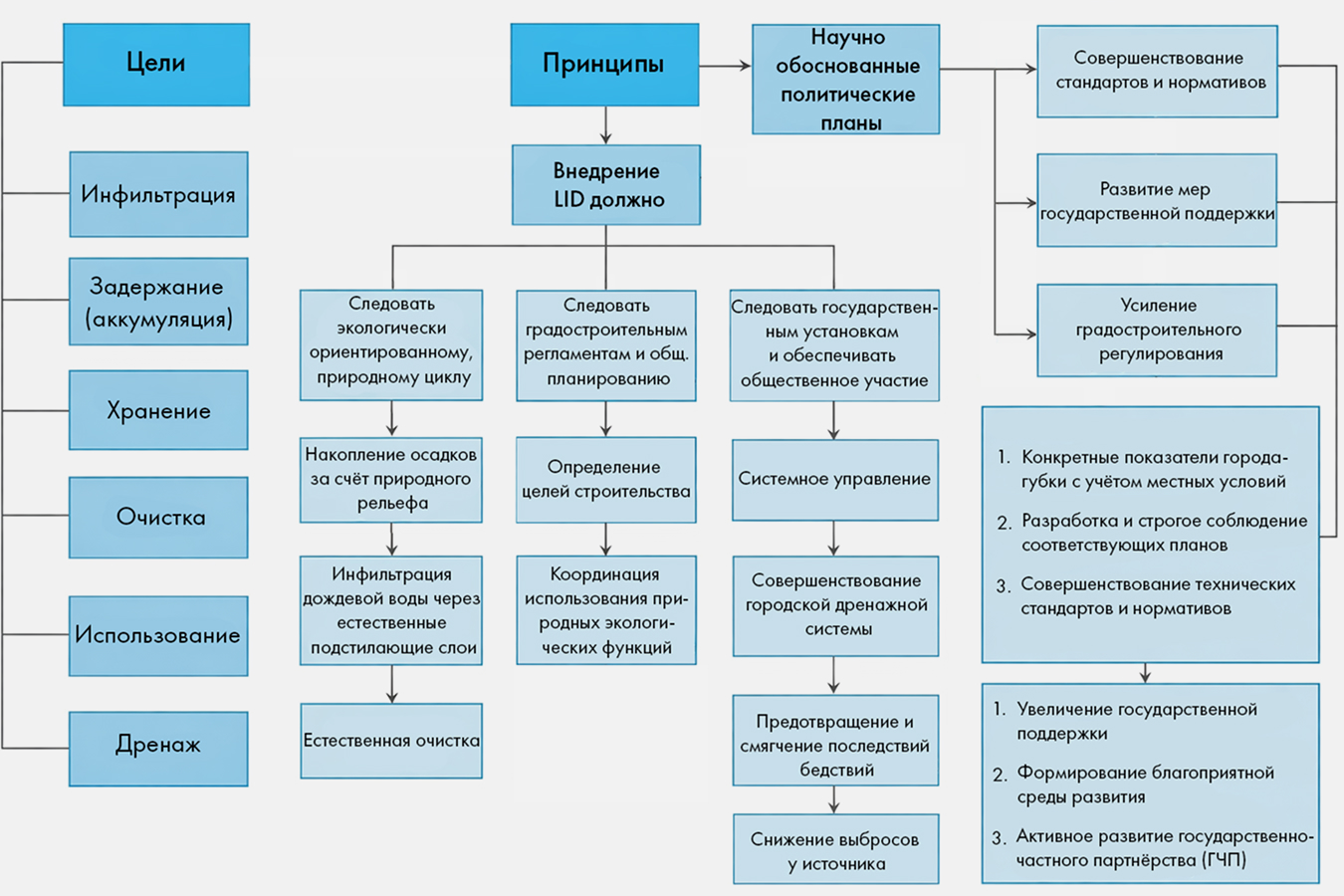 Принципиально важно, что внедрение организовано не как совокупность отдельных объектов, а как программа с измеримыми показателями — например, долей осадков, подлежащих удержанию и переработке (до 70–80 %). Введена система мониторинга и оценки, позволяющая сопоставлять результаты и корректировать подходы.