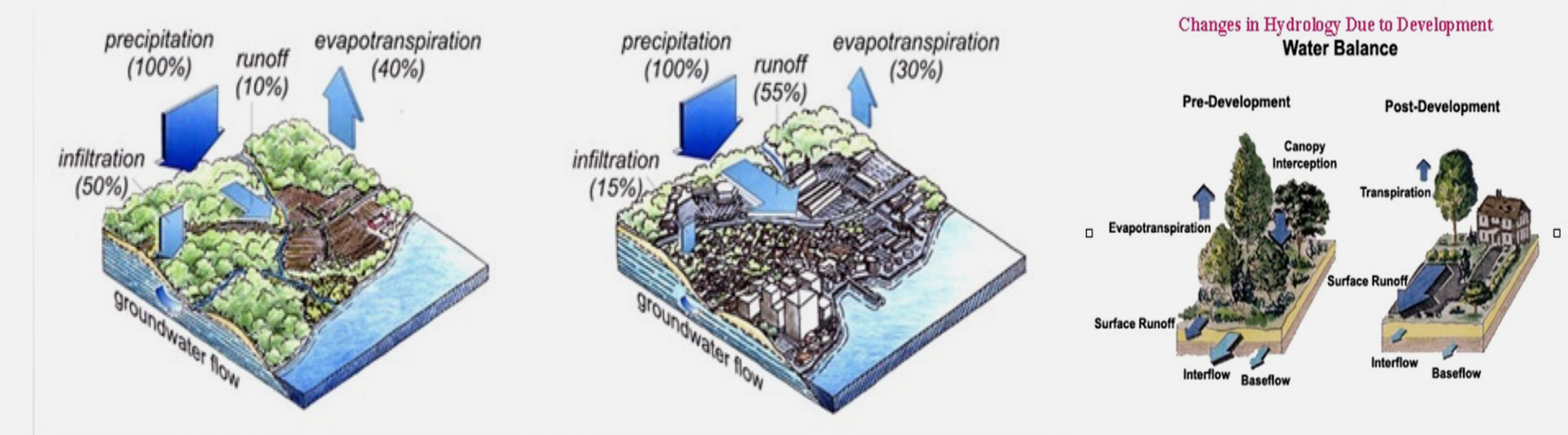 В гидрологической оптике это соответствует так называемому «синдрому городского ручья» (urban stream syndrome) — состоянию, при котором урбанизированная территория теряет способность регулировать водные потоки и начинает воспроизводить экологическую нестабильность.