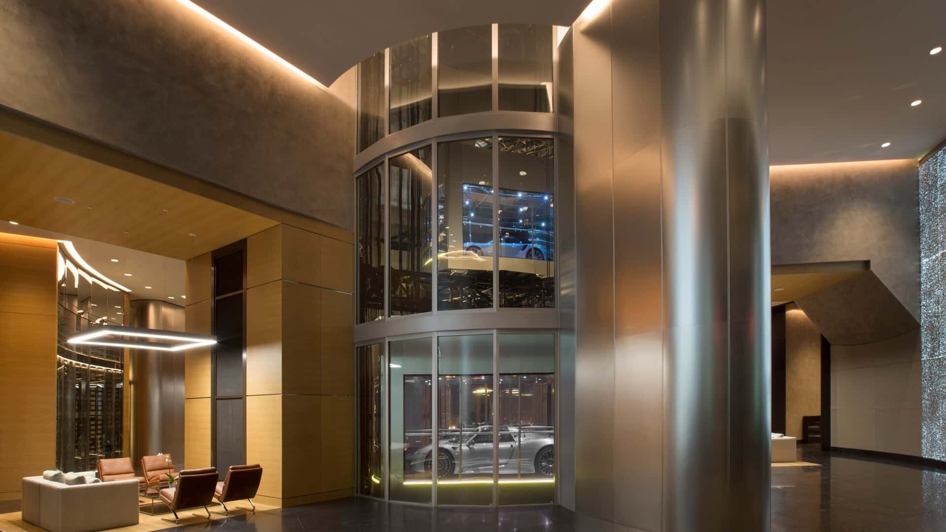 В 60-этажной башне Porsche Design Tower в Майами от Dezer Development установлены три автомобильных лифта, которые позволяют владельцам каждого из 132 апартаментов парковаться непосредственно рядом с собственными квартирами. Неудивительно, что этот небоскреб прозвали приютом одиноких миллиардеров.