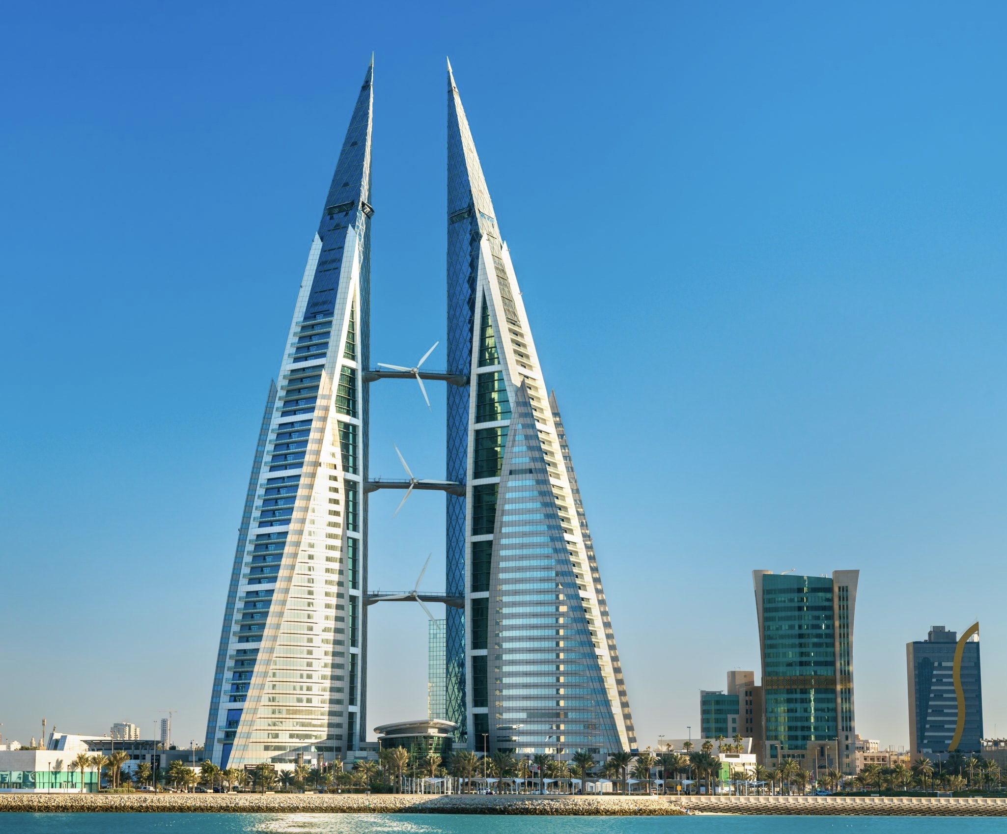В экостроительстве часто используют возобновляемые источники энергии (ВИЭ). Одно из самых известных зданий — проект Bahrain World Trade Center в Бахрейне (арх. Atkins), островном государстве в Персидском заливе. Здесь форма самих зданий направляет и усиливает потоки воздуха для эффективной работы турбин ветрогенераторов для получения электроэнергии.