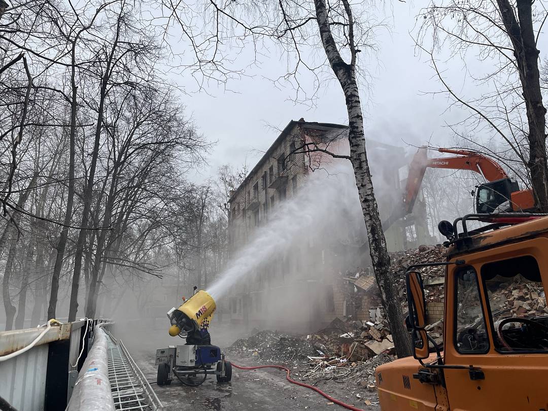 Примечательно, что демонтаж происходит не одним днем. В процессе задействованы водяные пушки, которые не дают пыли накрыть облаком пыли ближайшую территорию.