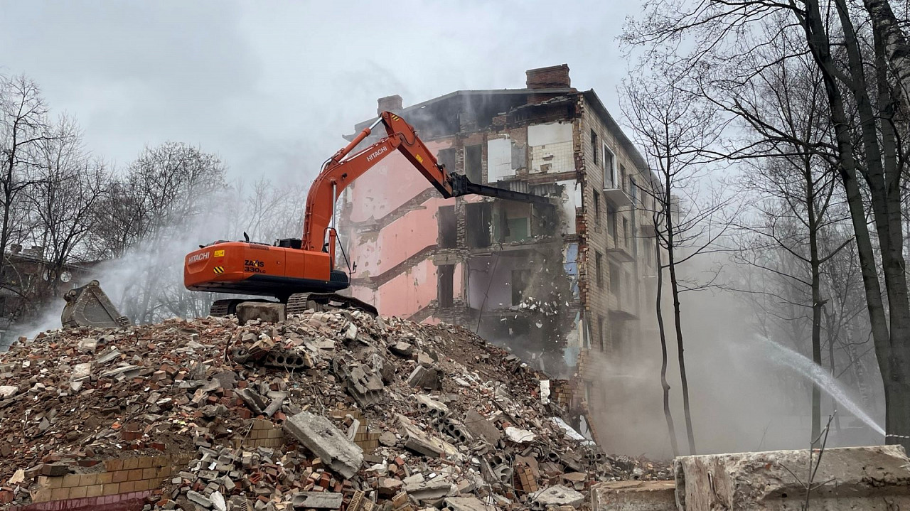Затем сносят остов здания и отправляют на переработку железобетонные компоненты.