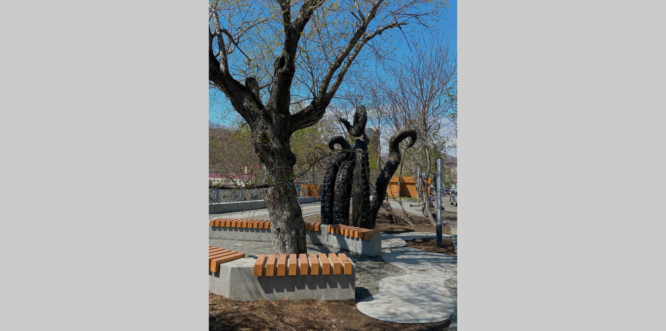 Другой формирующийся тренд – дизайн малых архитектурных форм, отражающих идентичность Крайнего Севера. Пока еще многие МАФы либо тиражируют стереотипные образы (медведи, олени, комары), либо транслируют национальные мотивы без должного переосмысления. Впрочем, имеющиеся примеры содержательно и эстетически выверенных МАФов позволяют надеяться на дальнейшее развитие тренда.