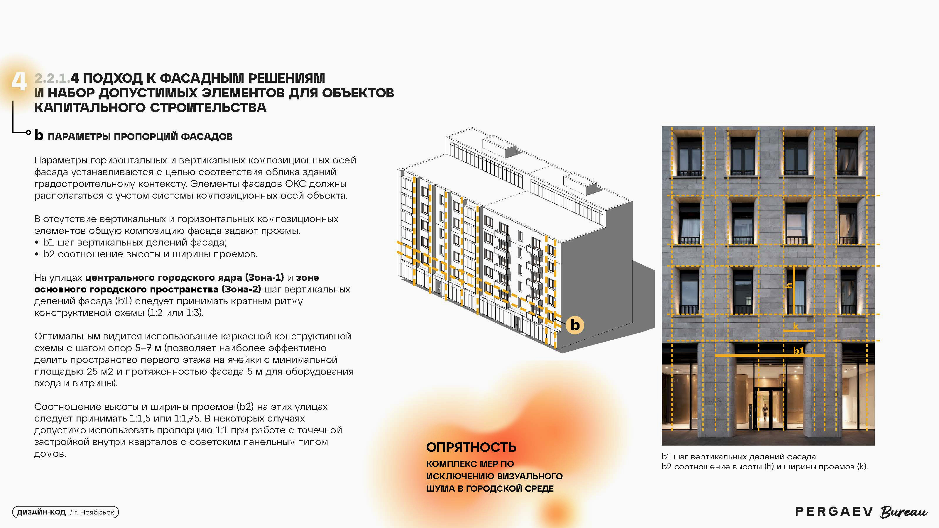 Разработке концепции дизайн-кода Ноябрьска предшествовал опыт Pergaev Bureau проектирования в городе различных объектов: центрального парка, арт-резиденции «Миксер», этнографического музея под открытым небом «Нум», благоустройства ряда улиц и дворовых пространств, арки на территории аэропорта с подсветкой в тонах северного сияния, а также проект реконструкции фасадов городской администрации. Все они сформировали новую архитектурную идентичность Ноябрьска.